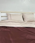Постільна білизна з елітного мерсеризованого сатину - розкіш у кожному дотику. Комплект виготовляється в Україні індивідуально для Вас, повністю ручна робота Особливістю цього комплекту постільної білизни є сатиновий кант(смужка) на наволочках та підковдрі. Чіткі коричневі лініїї створюють лаконічний, елегантний акцент і підкреслюють преміальний характер постільної білизни. Такий дизайн ідеально доповнює сучасні, мінімалістичні та дизайнерські інтер’єри. Комплект доповнено наволочками з вушками, які надають подушкам чіткої форми, створюють ефект готельної подачі та підкреслюють елегантність комплекту. Виконані з того ж сатину преміум класу, наволочки ідеально тримають форму, виглядають охайно та гармонійно доповнюють дизайн постільної білизни. ✓ Ви можете обрати інший колір смужки(канту), а також обрати варіант простирадла іншого кольору. В даному комплекті підковдра з двох кольорів: верх-бежевий оздоблений смужкою шоколад, а низ - колір шоколад. За Вашим запитом можемо відшити в один колір. Будь ласка, перед замовленням уточнюйте всі деталі. Сатинова постіль з дизайном — це інвестиція у якісний сон та естетику Вашої спальні. •100% натуральна довговолокниста бавовна•сертифікат: Oeko-Tex®, який підтверджує екологічність та гарантує безпеку для здоровʼя •тканина імпортована з Турецьких люкс фабрик•еталонна щільність 135 ± 5г/м² •має глянцево-шовковий блиск •дуже м'якенька та ніжна на дотик, ваше тіло буде в захваті •не ковзає, не електризується, не парить тіло та гіпоалергенна•завдяки спеціальній дороговартісній обробці не кошлатиться та не втрачає первинний вигляд понад 400 прань•підковдра зі зручною змійкою, за Вашим запитом можемо пошити на запах•гарантія якості 5років * термін пошиття 5-10 робочих днів** колір може відрізнятися при різному освітленні та різних дисплеях Комплект приходить в брендованій коробці - ідеально на подарунок