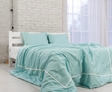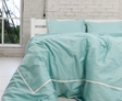 Постільна білизна з сатину, колір Бірюза з білою смужкою
